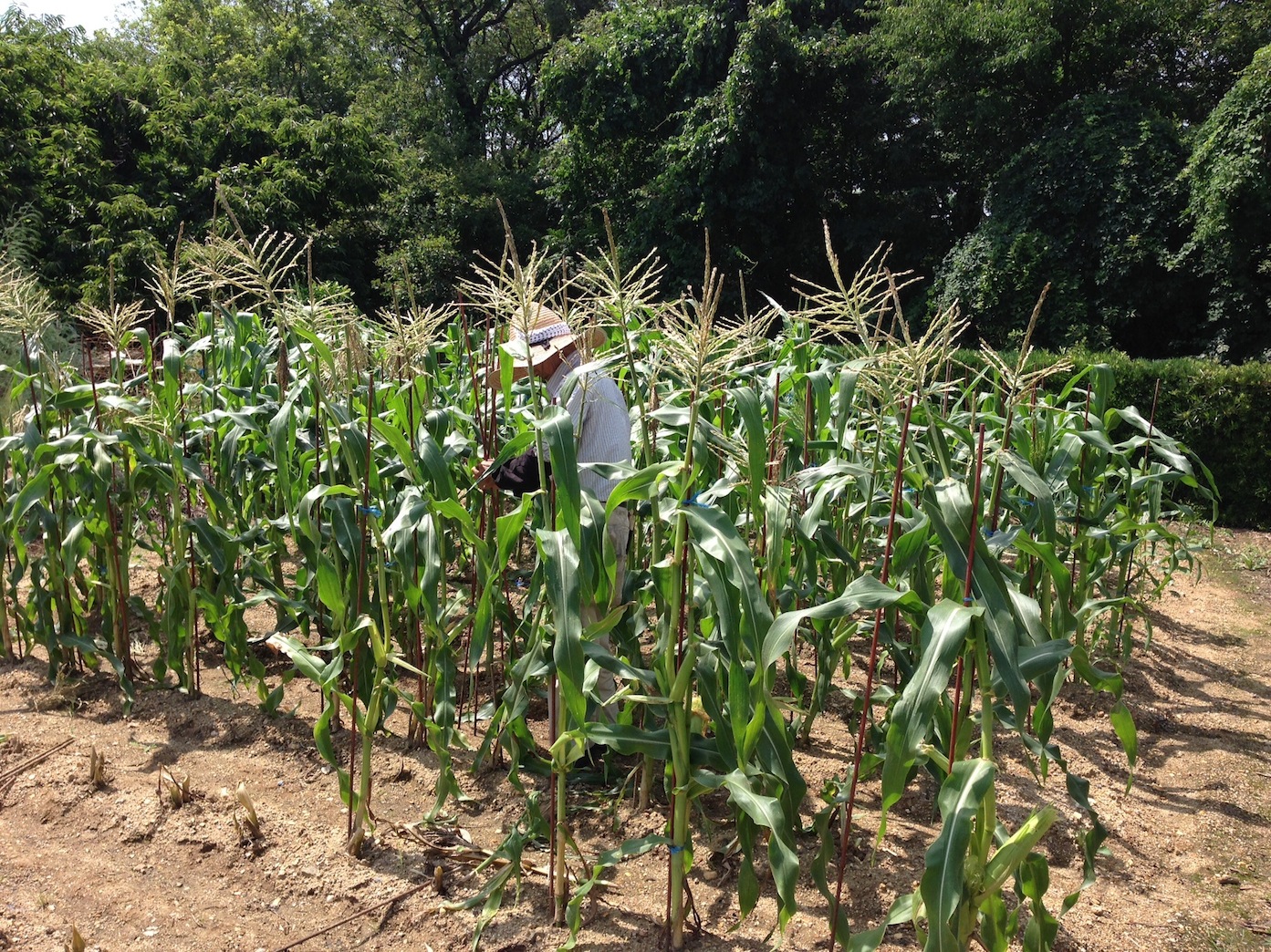トウモロコシのお世話をしているお祖父さん。
