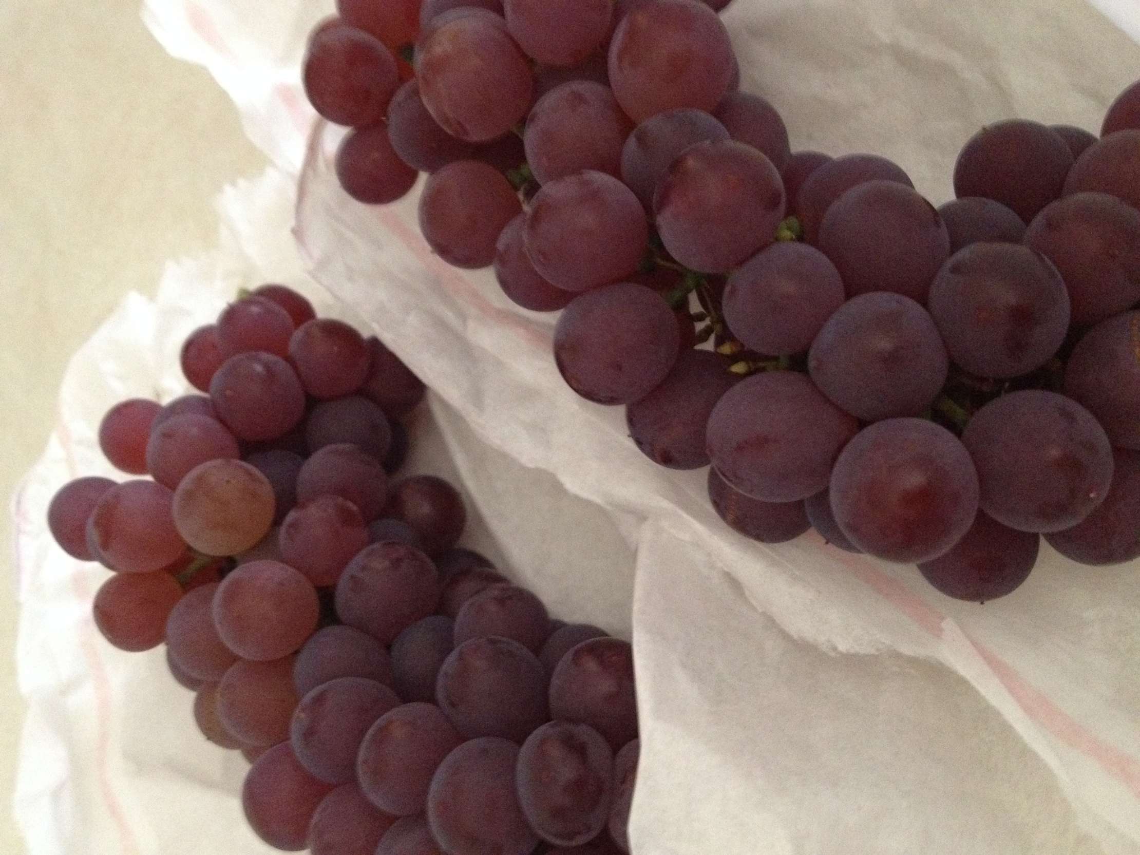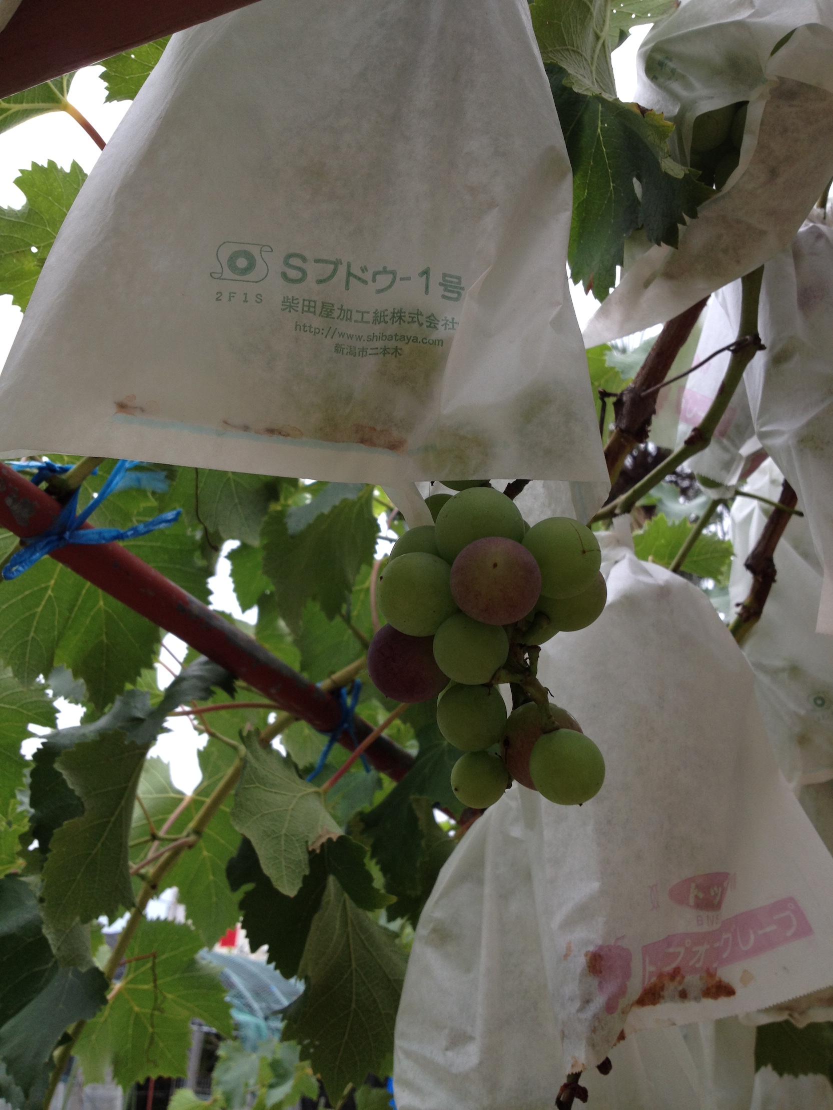 大きくなり過ぎて、袋からはみ出た葡萄。