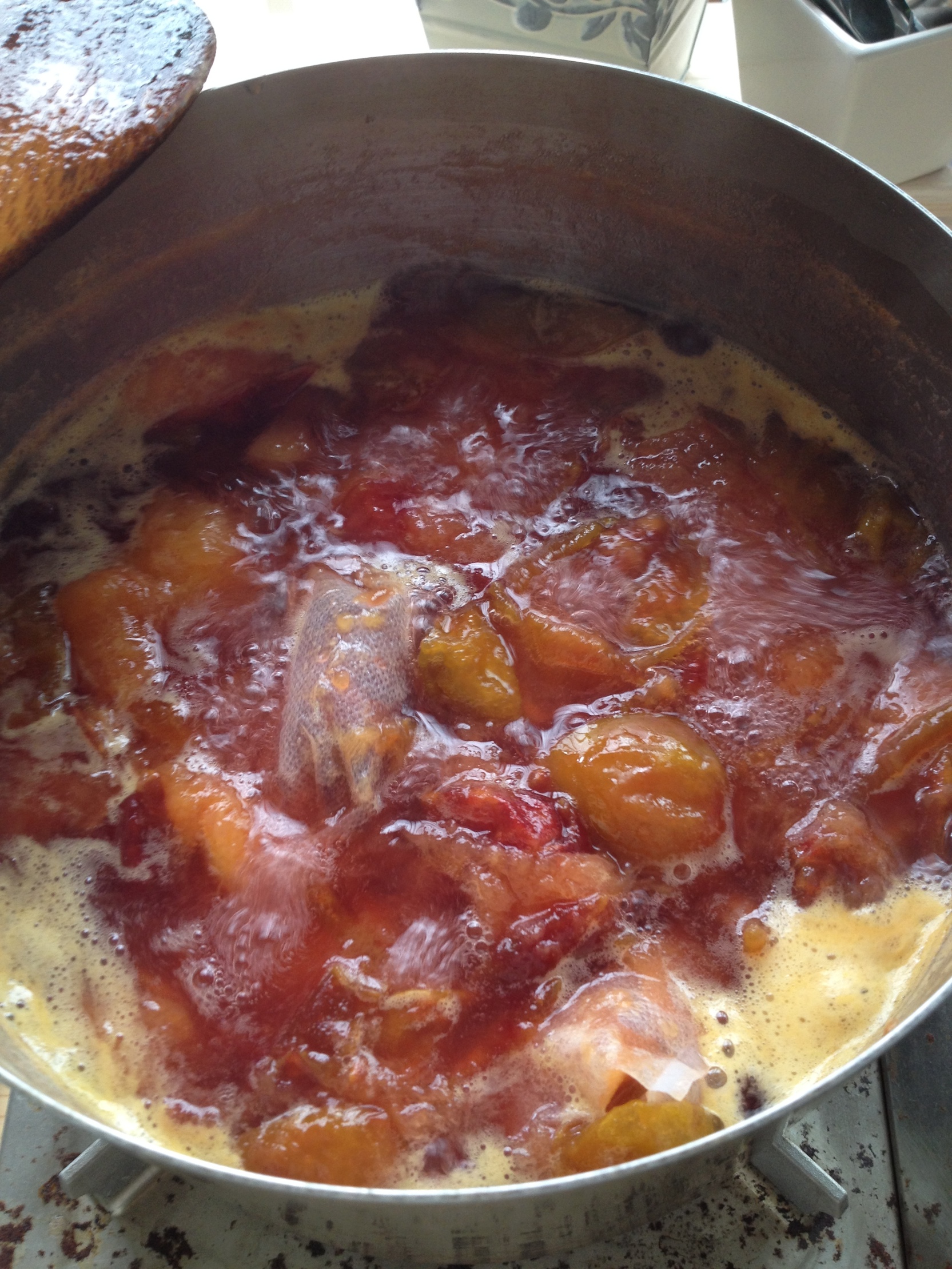 ずいぶんとろみがついて、はねるジャムが熱いったらありません。