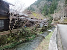 ずいぶんと山の中に分け入ったところに、10何件かのお家が寄り添って立っているんですが、清流沿いに建っていて、すべてのお家には、清流に降りてお水を使う為の階段があるんです。